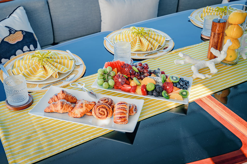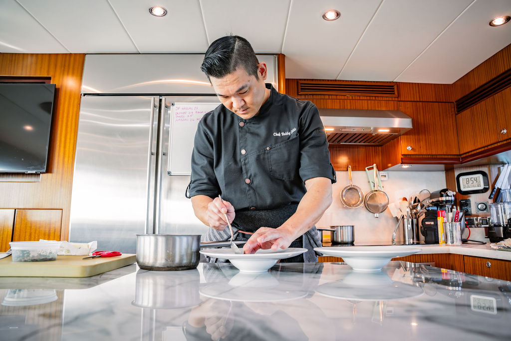 At the heart of each day is an exceptional culinary journey led by Chef Bobby, whose decade of experience as a professional yacht chef shines through in beautifully crafted dishes inspired by flavors from around the world.